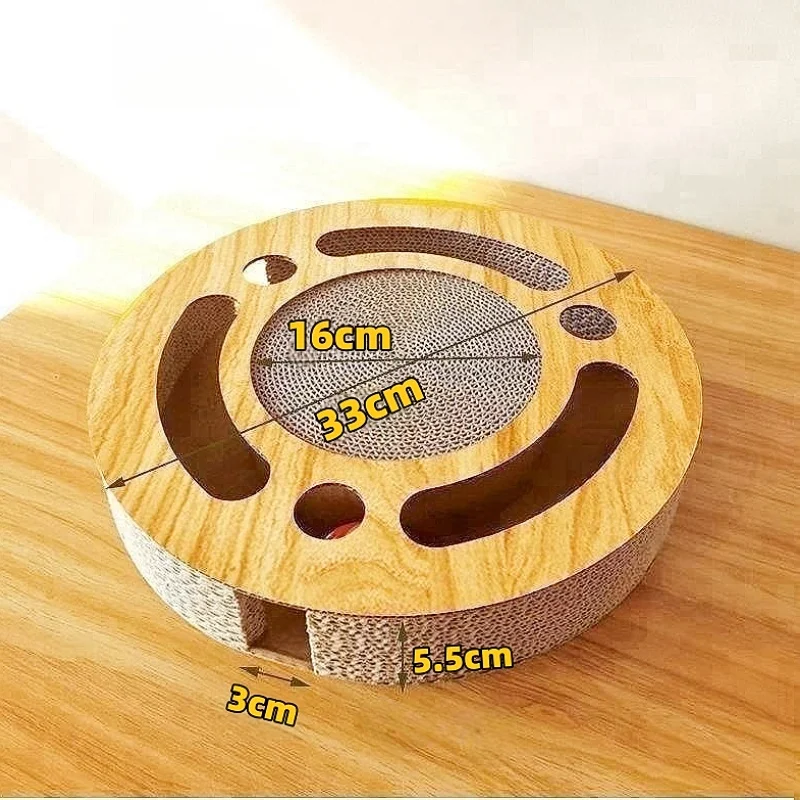 Factory Price 3-in-1 Interactive Cat Toy round Shape Scratcher with Wood Ball Track Classic Christmas Style Cardboard